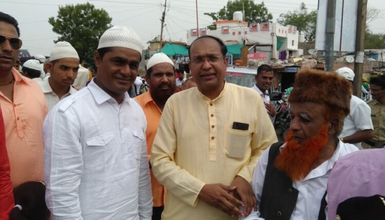कारंजा: वसंतराव नाईक विमुक्त जाती व भटक्या जमाती आर्थिक विकास महामंडळाचे संचालक व सुप्रसिद्ध स्त्रीरोग तज्ज्ञ डॉ. श्याम जाधव (नाईक) यांनी ईद उल फित्र सण मुस्लिम बांधवांसोबत साजरा केला. बुधवारी सकाळी ९ वाजता ईदगाह मैदानात ईद उल फित्रची सामुहिक नमाज अदा करण्यात आली. त्यानंतर ईदगाह जवळ अनेक मुस्लिम बांधवासमवेत त्यांनी ईद साजरी केली. डॉ श्याम जाधव (नाईक) यांनी समस्त मुस्लिम बांधवांना गुलाबाचे फुल देऊन ईद निमित्त शुभेच्छा दिल्या.