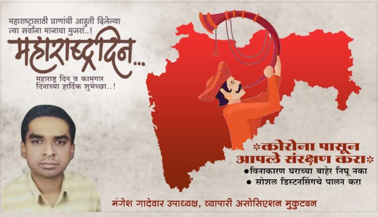 महाराष्ट्र दिन व कामगार दिनाच्या मंगेश गादेवार यांच्या कडून हार्दिक शुभेच्छा