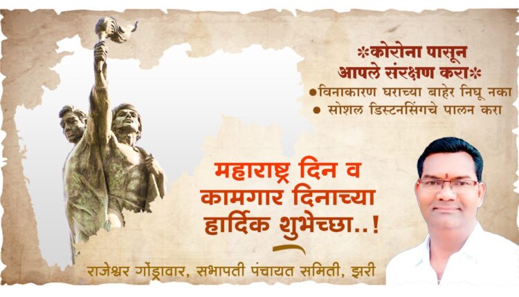 महाराष्ट्र दिन व कामगार दिनाच्या राजेश्वर गोंड्रावार यांच्या कडून हार्दिक शुभेच्छा