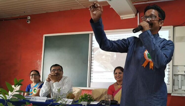 बहुगुणी डेस्क, चांदूर रेल्वेः स्व. मदनगोपाल मुंदडा कला, वाणिज्य आणि अशोक विज्ञान महाविद्यालयात वाचनप्रेरणादिन आणि मराठी अभ्यासमंडळाचं उद्घाटन मंगळवारी झालं. या निमित्त ख्यातनाम निवेदक, कवी, साहित्यिक, स्तंभलेखक सुनील इंदुवामन ठाकरे यांचा ‘जगू कविता: बघू कविता’ हा कार्यक्रम झाला. या सोहळ्याच्या अध्यक्षस्थानी प्राचार्य डॉ. जयंत कारमोरे होते. महाविद्यालयाचा मराठी विभाग आणि ग्रंथालयाच्या वतीनं हे आयोजन करण्यात आलं. विभागप्रमुख प्रा. डॉ. प्रभावती विहिरे आणि प्रा. सुषमा मावंदे यांनी या उपक्रमाचं आयोजन केलं.