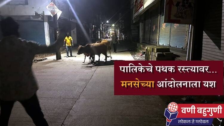शहरातील मोकाट जनावरांमुळे वाहतुकीला अडथळा येत होता. नागरिकांचा जीव धोक्यात येत होता. याविरोधात मनसेने केलेल्या ‘ढोरकी आंदोलनाला’ अखेर यश मिळाले असून पालिका प्रशासनाने कार्यवाही सुरू केली आहे. ही मोहीम नियमितपणे चालू राहिली तर नागरिकांना मोठा दिलासा मिळेल. वणीकरांच्या सुरक्षेसाठी आणि शहराच्या स्वच्छतेसाठी मनसे सदैव सज्ज आहे. – अंकुश बोढे, शहराध्यक्ष मनसे