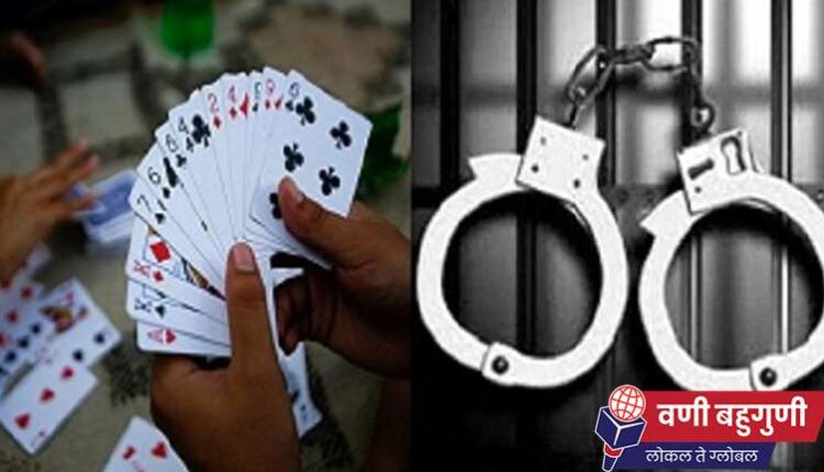 पटवारी कॉलोनी येथे श्रावणी बारच्या मागे काही इसम पैश्याचा जुगार खेळत असल्याची माहिती वणी पोलिसांना मिळाली होती. माहितीवरून पोलिसांनी बुधवार 6 एप्रिल रोजी सायंकाळी 5.30 वाजता सदर ठिकाणी रेड केली. त्या ठिकाणी 4 इसम अवैधरित्या बावन गंजीपत्यावर पैशांचे हारजीत खेळताना आढळले. घटनास्थळ वरून पोलिसांनी रमेश महादेव मत्ते रा. ईराणी कॉलनी, पुरुषोत्तम हिरु बोढे रा. जैन ले आऊट, प्रवीण नत्थुजी तुराणकर रा.जैन लेआउट व विजय नत्थुजी विधाते रा. काळे हॉस्पिटल जवळ वणी याना अटक करून महाराष्ट्र जुगार प्रतिबंध अधिनियम कलम 12 अ अनव्ये गुन्हा दाखल केला आहे.