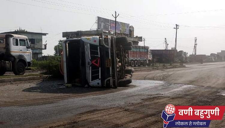 विवेक तोटेवार, वणी: चिखलगाव जवळील वणी-वरोरा बायपासजवळ रात्री एक ट्रक पलटी झाला. या अपघातात ट्रक चालक जखमी झाला. फिरोज खान (40) रा. बोरी अरब असे जखमी ट्रक चालकाचे नाव आहे. सदर ट्रक हा जैन ट्रान्सपोर्टचा असल्याची माहिती आहे. मंगळवारी दिनांक 3 ऑक्टोबरच्या रात्री उशिरा ट्रक चालक फिरोज हा मुकुटबन येथील सिमेन्ट कंपनीतून ट्रकमध्ये (MH34 BG4309) सिमेंट भरून खामगावला जात होता. रात्री 12 वाजताच्या सुमारास चिखलगाव जवळील वणी-वरोरा बायपास जवळ येथे ट्रक चालकाचे ट्रकवरील नियंत्रण सुटले व ट्रक पलटी झाला. यात चालकाच्या डोक्याला व हाताला मार लागला. चालकाला डुलकी आल्याने अपघात झाल्याचे बोलले जात आहे. अपघात झाल्याचे लक्षात येताच काही लोकांनी चालकाला ग्रामीण रुग्णालयात उपचारासाठी दाखल केले. चालकाची प्रकृती धोक्याबाहेर असून चालकावर वणीतील एका खासगी रुग्णालयात उपचार सुरू आहे.