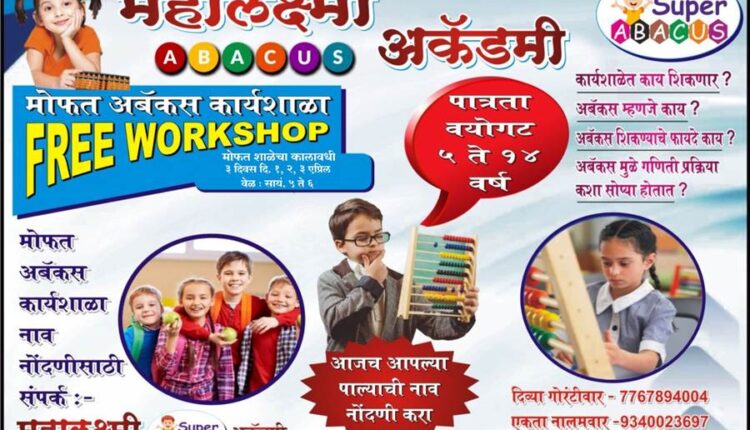 अबॅकस हे दोनच तंत्रज्ञान आहे. विद्यार्थ्यांना अबॅकस म्हणजे काय आणि त्याचे फायदे काय हे कार्यशाळेत शिकवले जाईल. कठीणातल्या कठीण गणिताच्या पद्धती अगदी सोप्या करून यात शिकवल्या जातात. ही कार्यशाळा श्रीकृष्ण भवन, सिद्धिविनायक मॅचिंग सेंटर जवळ, डॉक्टर तुगनायत हॉस्पिटल रोड येथे दुसऱ्या मजल्यावर होईल.