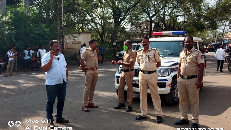 संपकरी कर्मचा-यांची जोरदार घोषणाबाजी, पोलिसांचा चोख बंदोबस्त