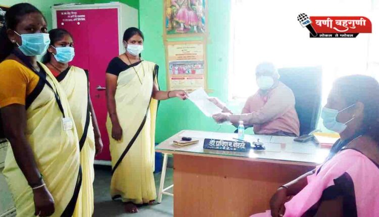 निवेदन देते वेळी विना पाचभाई, छाया पिदूरकर, अर्चना नालमवार, संगीता वालकोंडे, मेघा कन्नाके इत्यादी आशासेविका व गटप्रवर्तक उपस्थित होत्या.