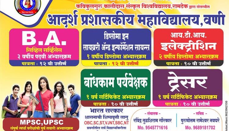 बहुगुणी डेस्क, वणी: तुमचे जर प्रशासकीय अधिकारी किंवा शासकीय कर्मचारी होण्याचे स्वप्न असेल तर तुम्हाला बी.ए. (सिव्हिल सर्व्हिसेस) करण्याची संधी मिळणार आहे. शहरातील गुंजेच्या मारोती जवळील, आदर्श प्रशासकीय महाविद्यालयात ही पदवी अभ्यासक्रम उपलब्ध आहे. 2024 ते 25 या शैक्षणिक वर्षांसाठी प्रवेश सुरू झाले आहेत. या अभ्यासक्रमात वि्दयार्थ्यांना स्पर्धा परीक्षेची संपूर्ण तयारी करून दिली जाणार आहे. त्यामुळे विद्यार्थीना प्रशासकीय अधिकारी बनण्याची सुवर्णसंधी मिळणार आहे. याशिवाय या महाविद्यालयात डिप्लोमा इन लायब्रेरी ऍन्ड इन्फॉर्मेशन सायन्स या विषयाचा एक वर्षाचा डिप्लोमा तसेच डीसी इन इलेक्ट्रीशनयन (आयटीआय) या दोन वर्षांच्या कोर्ससाठीही प्रवेश सुरू आहे.  या व्यतिरिक्त या वर्षांपासून बांधकाम पर्यवेक्षक व ट्रेसर हा एक वर्षाचा सर्टिफिकेट कोर्स सुरु करण्यात आला आहे. तरी या अभ्यासक्रमात प्रवेश घ्यावा, असे आवाहन कॉलेज प्रशासनातर्फे करण्यात आले आहे.