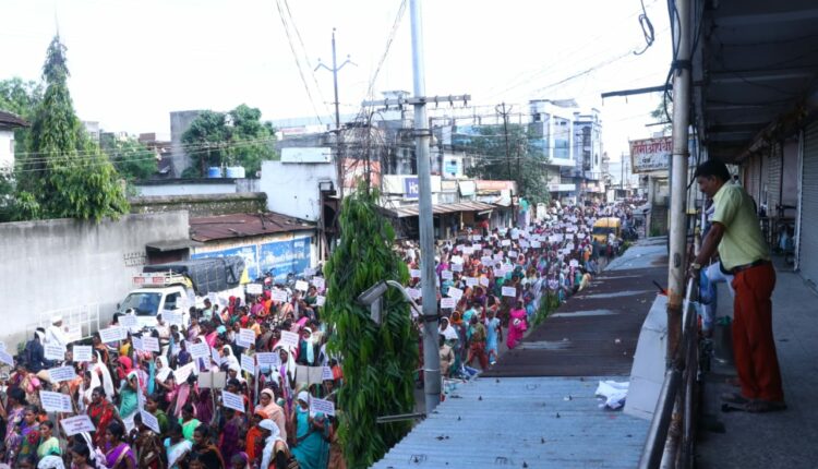 निकेश जिलठे, वणी: महिला बचतगटांची संपूर्ण कर्जमाफी करावी या प्रमुख मागणीसह विविध मागण्यांसाठी सोमवारी वणीमध्ये काढण्यात आलेल्या महिलांच्या महामोर्चाने वणी शहर दणाणले. सुमारे 4 हजार महिला या मोर्चात सहभागी झाल्या होत्या. ‘बचत गटांचे कर्जमाफ झालेच पाहिजे’, ‘नारीशक्तीच्या विजय असो’ असे नारे यावेळी लावण्यात आले. एसडीओंना निवेदन सादर करून या महापरिषदेची सांगता झाली. डॉ. महेंद्र लोढा यांच्या नेतृत्वात व निलीमाताई काळे यांच्या मार्गदर्शनात ही महापरिषद घेण्यात आली.