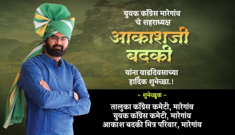 शुभेच्छुक:- तालुका कॉंग्रेस कमेटी, मारेगाव, युवक कॉंग्रेस कमेटी, मारेगाव, आकाश बदकी मित्र परिवार, मारेगाव