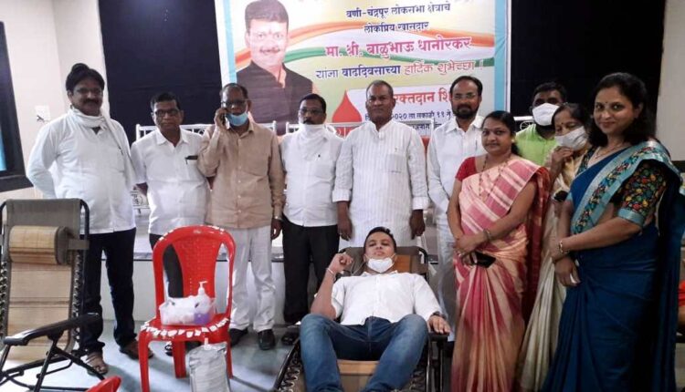 जब्बार चीनी, वणी: वणी-चंद्रपुर लोकसभा मतदार संघाचे खासदार बाळू धानोरकर यांच्या वाढदिवसा निमित्त कोविड 19 च्या संकटामुळे सध्या रक्तपेढीतील साठा खालावलेला आहे. हा रक्तपुरवठा भरून काढण्यासाठी शहर व तालुका काँग्रेस कमेटी तर्फे शनिवार 4 जुलैला रक्तदान शिबिराचे आयोजन करण्यात आले.
