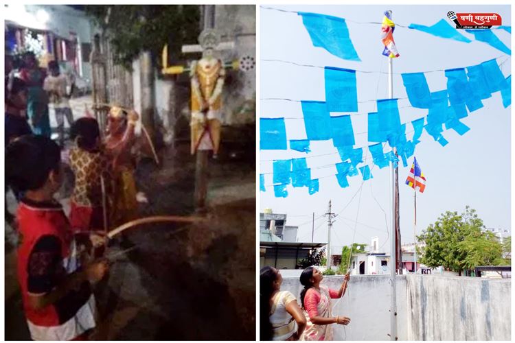 सुनील इंदुवामन ठाकरे, वणी: कोरोनाच्या पार्श्वभूमीवर दसरा, विजयादशमी आणि धम्मचक्र प्रवर्तनदिन साधेच साजरे झालेत. पंजाब सेवा संघाची रावणदहनाची गेल्या 64 वर्षांपासूनची परंपरा आहे. परन्तु परंपरा अखंडित राहावे म्हणून रविवार 25 ऑक्टो. रोजी गर्दी न करता प्रतिकात्मक रावण दहन कार्यक्रम पार पडला. धम्मचक्र प्रवर्तनदिनाला होणारी प्रभातफेरी व प्रबोधनांचे कार्यक्रमही यंदा झाले नाहीत. मात्र ठिकठिकाणी बुद्धवंदना घेण्यात आली. या वेळी उत्साह नसला तरीही आतला उत्साह सर्वांचाच कायम होता.