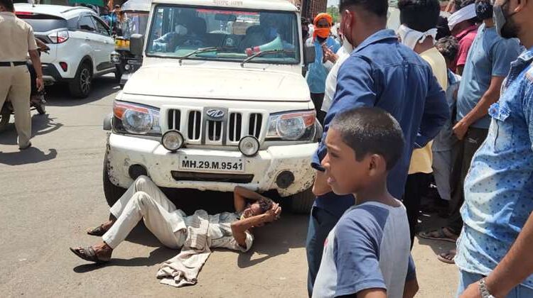 गाडी जप्त केल्याने त्याचे प्रशासनाच्या वाहनपुढे लोटांगण