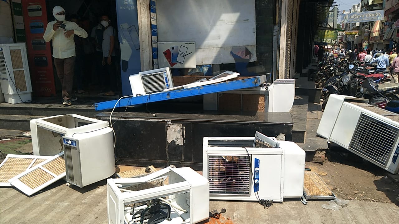 त्यानंतर शिवसैनिकांनी आपला मोर्चा जटाशंकर चौकातील विवेक पांडे यांच्या मोबाईल शॉपीकडे वळवला. पहिल्या घटनेच्या अगदी दहा मिनिटांनी 10.30 च्या सुमारास शिवसैनिक पांडे मोबाईल शॉपीजवळ पोहोचले. त्यावेळी ते दुकान सुरू होते. शिवसैनिकांनी लगेच घोषणा देत या मोबाईल शॉपीवर हल्लाबोल केला. या दुकानात त्यांनी दुकानातील काउंटर तसेचे एसी इत्यादी साहित्याची तोडफोड केली व दुकानातील एसी बाहेर काढून फेकले.