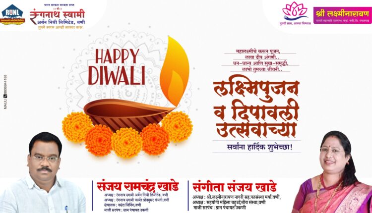 शुभेच्छुक - संजय रामचंद्र खाडे - अध्यक्ष, रंगनाथ स्वामी अर्बन निधी लि. वणी.... संगिता संजय खाडे - अध्यक्ष, श्री लक्ष्मीनारायण नागरी सहकारी पतसंस्था लि. वणी