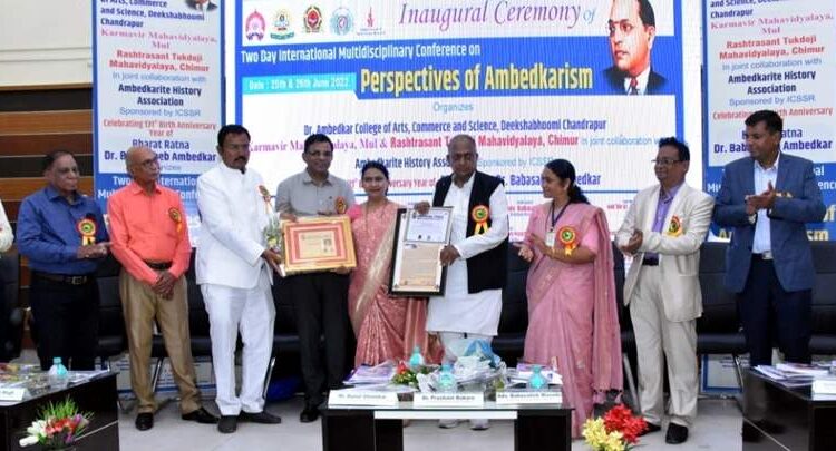 विवेक तोटेवार, वणी: आंबेडकराईट हिस्ट्री असोसिएशन व डॉ. बाबासाहेब आंबेडकर मेमोरियल सोसायटी चंद्रपूर द्वारा संचालित डॉ. आंबेडकर कला, वाणिज्य व विज्ञान महाविद्यालय चंद्रपूर, कर्मवीर महाविद्यालय मुल, राष्ट्रसंत तुकडोजी महाविद्यालय चिमूर, त्यांच्या संयुक्त विद्यमाने आणि भारतीय सामाजिक विज्ञान संशोधन परिषद प्रायोजित भारतरत्न डॉ. बाबासाहेब आंबेडकर यांच्या 131 व्या जयंती पर्वावर आंबेडकरवादी दृष्टीकोन या विषयावर आधारित दोन दिवसीय आंतरविद्याशाखीय, आंतरराष्ट्रीय परिषद 25 व 26 जून 2022 रोजी संपन्न झाले. या परिषदेत आंबेडकरी चळवळीत कार्य करणाऱ्या कार्यकर्त्यांचा पुरस्कार देऊन सत्कार करण्यात आला.