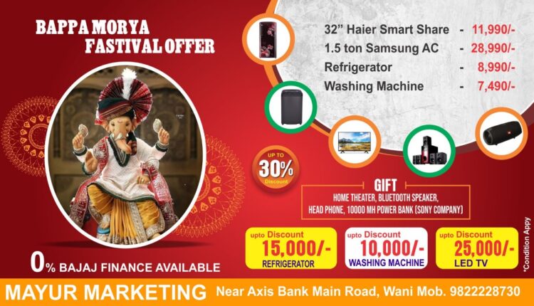 वणीतील मयूर मार्केटिंग (सोनी शोरुम) येथे ‘बाप्पा मोरया’ फेस्टिव्हल ऑफर