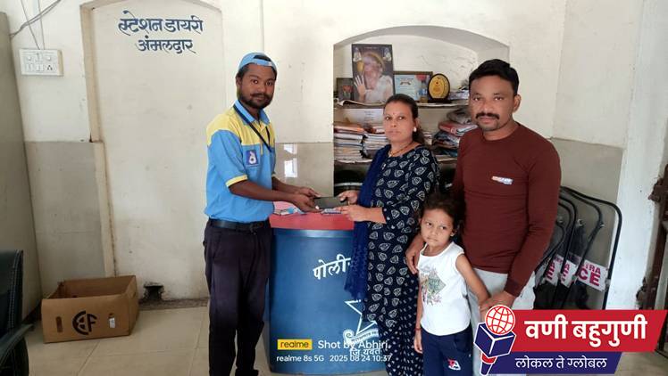 दिनांक 23 ऑगस्ट 2025 रोजी सायंकाळी 6.30 वाजताच्या सुमारास राखी कांबळे (रा. पंचशील नगर, वणी) आणि त्यांचे कुटुंबीय शासकीय मैदानावर तान्हा पोळा पाहण्यासाठी उपस्थित गेले होते. त्यावेळी त्यांना मैदानात एक बेवारस मोबाईल सापडला. प्रामाणिक हेतूने त्यांनी तो ताब्यात ठेवला आणि मोबाईल मालकाच्या कॉलची वाट पाहिली. मात्र, तासभरात मोबाईलवर कोणाताही कॉल आला नाही. शिवाय मोबाईल लॉक असल्याने त्यांना मोबाईल कुणाचा आहे हे देखील शोधता आले नाही. अखेर तासभर वाट पाहून राखी यांनी मोबाईल पोलीस स्टेशन वणी येथे पोहोचवून पोलीस हवालदार विकास घडसे आणि ललित नवघरे यांना सुपूर्द केला.