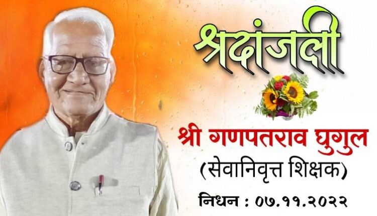 सेवानिवृत्त शिक्षक गणपतराव घुगुल यांचे निधन