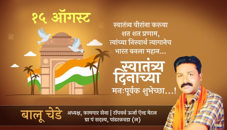 शुभेच्छुक: बालू चेडे, अध्यक्ष कामगार सेना टॉपवर्थ उर्जा व मेटल । ग्रा. पं. सदस्य पांढरकवडा (ल)