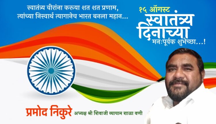 शुभेच्छुक : प्रमोद निकुरे, अध्यक्ष श्री शिवाजी व्यायाम शाळा वणी | अध्यक्ष शहर काँग्रेस कमिटी वणी