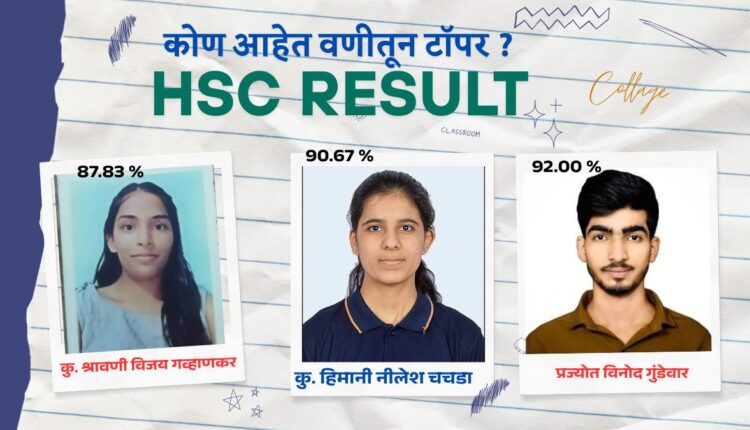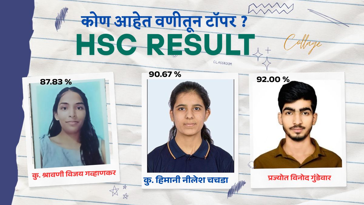 वणी पब्लिक ज्यु. कॉलेजमधून विज्ञान शाखेतून वंश राहुल निघोट हा 71 टक्के गुण घेत कॉलेजमधून दुसरा तर अक्षय रणजीत सिंग हा 68.83 टक्के गुण घेत तिसरा आला आहे. वाणिज्य शाखेतून सत्यम शिवदास मिश्रा हा 84.83 टक्के गुण घेत कॉलेजमधून पहिला तर कु. भावना संजय वरारकर ही 83.83 टक्के गुण घेत दुसरी व युग रुपेश कोचर हा विद्यार्थी 80.17 टक्के गुण घेत कॉलेजमधून तिसरा आला आहे. लॉयन्स ज्यु. कॉलेजची विज्ञान शाखेची कु. अनम सिद्धीकी ही 60 टक्के गुण घेत कॉलेजमधून प्रथम आली. या कॉलेजचा 85.17 टक्के निकाल लागला आहे.