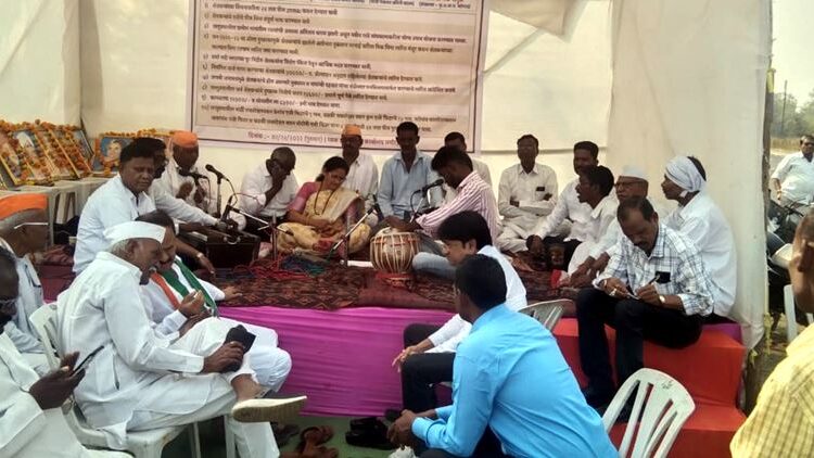 भजनाच्या माध्यमातून मांडले शेतक-यांचे प्रश्न.... अनेक नेत्यांनी दिली उपोषण मंडपास भेट
