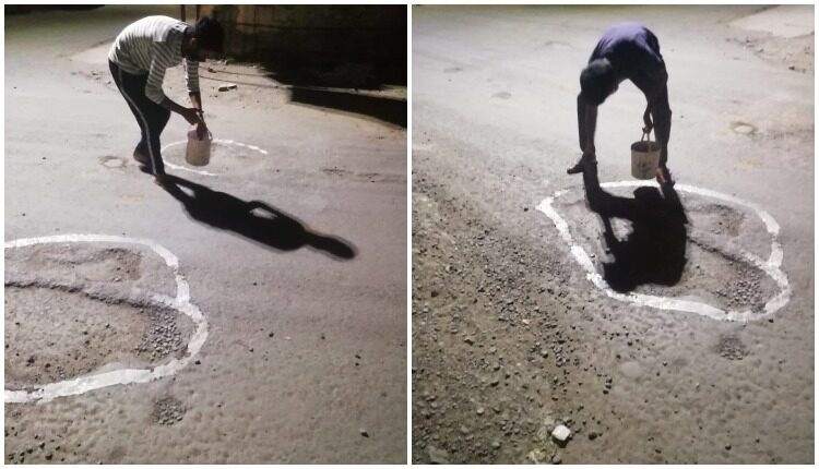 युवासेनेने रंगवले शहरातील खड्डे, प्रशासनाचे डोळे उघडण्यासाठी अनोखा उपक्रम