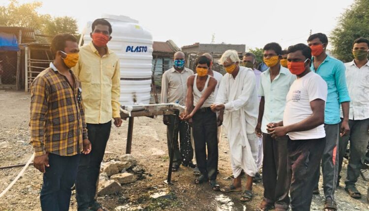 ईशान मिनरल्स कंपनीतर्फे अडेगावात हॅन्डवॉश केंद्र सुरू