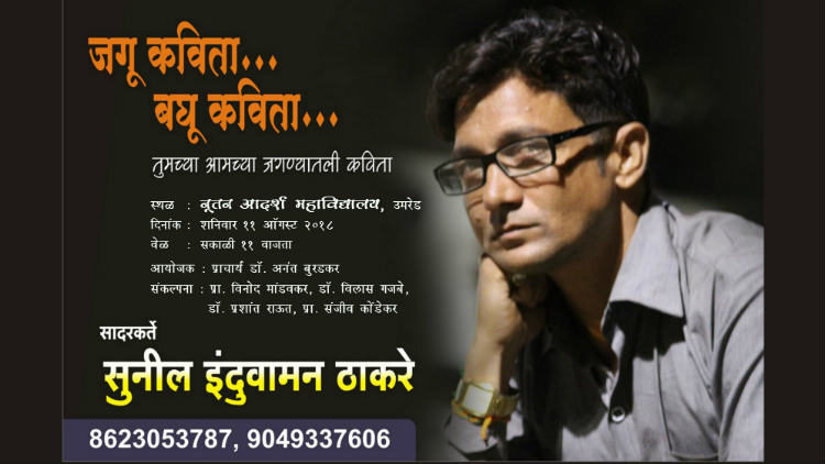 बहुगुणी डेस्क, उमरेडः विदर्भातील ख्यातनाम कवी, गीतकार व निवेदक सुनील इंदुवामन ठाकरे यांचा ‘जगू कविता: बघू कविता’ हा कार्यक्रम नूतन आदर्श महाविद्यालयात आयोजित केला आहे. शनिवार 11 ऑगस्टला महाविद्यालयाच्या सभागृहात सकाळी 11 वाजता ठाकरे या कार्यक्रमातून विद्यार्थ्यांसोबत ‘कविता आणि सकारात्मकता’ या विषयावर संवाद साधतील.