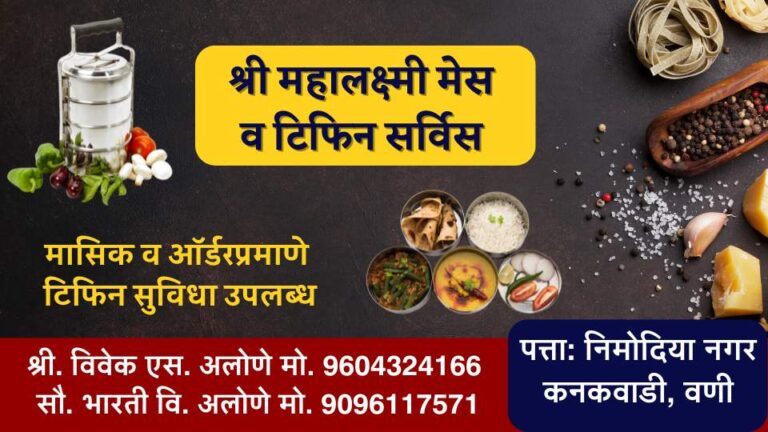 बहुगुणी डेस्क, वणी: शहरातील कनकवाडी परिसरात आता घरगुती व्हेज-नॉनव्हेज टिफिनची सुविधा उपलब्ध झाली आहे. निमोदिया नगर येथे श्री महालक्ष्मी मेस व टिफिन सर्विस येथे महिनेवारी टिफिन तसेच आवश्यक त्या वेळी टिफिन सेवा पुरवली जाते. यासह घरी बसून देखील जेवणाची सुविधा उपलब्ध आहे. एकदा अवश्य टिफिन ट्राय करावा, असे आवाहन श्री महालक्ष्मी मेस टिफिन सर्विसचे संचालक … Continue reading कनकवाडीमध्ये सुरु झाली घरगुती मेस व टिफिन सर्विस