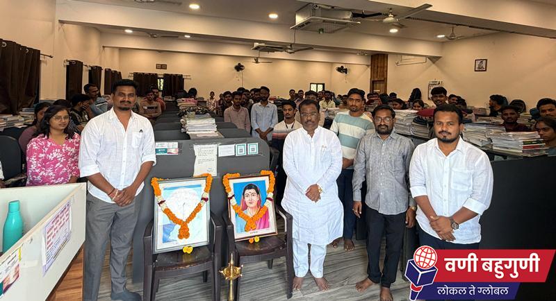 बहुगुणी डेस्क, वणी: संजय खाडे फाउंडेशन संचालित स्व. रामचंद्र खाडे स्मृतीशेष महात्मा फुले अभ्यासिकेत महात्मा फुले जयंती उत्साहात साजरी करण्यात आली. दिनांक 11 एप्रिल 2026 रोजी सकाळी 11 वाजता आयोजित कार्यक्रमाला अभ्यासिकेतील सर्व विद्यार्थी उपस्थित होते. कार्यक्रमाची सुरुवात मान्यवरांच्या हस्ते दीप प्रज्वलन व महात्मा फुले यांच्या प्रतिमेला पुष्पहार अर्पण करून करण्यात आली. यावेळी संजय खाडे व वैभव ठाकरे यांनी विद्यार्थ्यांना मार्गदर्शन केले, तर ईश्वर खाडे व धनंजय खाडे यांची विशेष अतिथी म्हणून उपस्थिती होती.