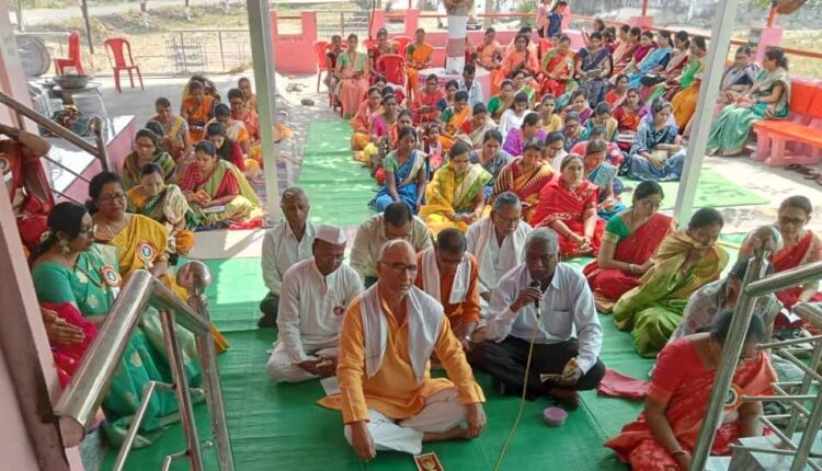 जितेंद्र कोठारी, वणी: गुडीपाडव्याच्या निमित्याने नववर्षाचे स्वागत माऊलीच्या नामस्मरण व भक्तिभावाने साजरा करण्यासाठी श्री माऊली ग्रुपतर्फे छोट्या पोथीचे पारायण सोहळा आयोजित करण्यात आला. जिजाऊ नगर येथील गजानन महाराज मंदिरात आयोजित या कार्यक्रमात सकाळी 9 ते 10.30 वाजेपर्यंत पारायण, 10.30 ते 11.00 उपासना व 12.00 वाजता महाआरतीनंतर महाप्रसाद वितरण करण्यात आले. यावेळी तब्बल 200 महिलांनी सामूहिक पोथीचे वाचन केले. पारायण कार्यक्रमात मुन्ना महाराज तुगनायत, गोपाल मल्लूरवारसह माऊली ग्रुपच्या ॲड. पौर्णिमा शिरभाते, शालिनी रासेकर, विजया आगबत्तलवार ,ज्योत्स्ना आचार्य, गीतांजली एकरे, वंदना धगडी, मंगला झिलपे, मंदा बांगडे, सविता ठेपाले, सुरेखा वडीचार ह्या महिला उपस्थित होत्या.