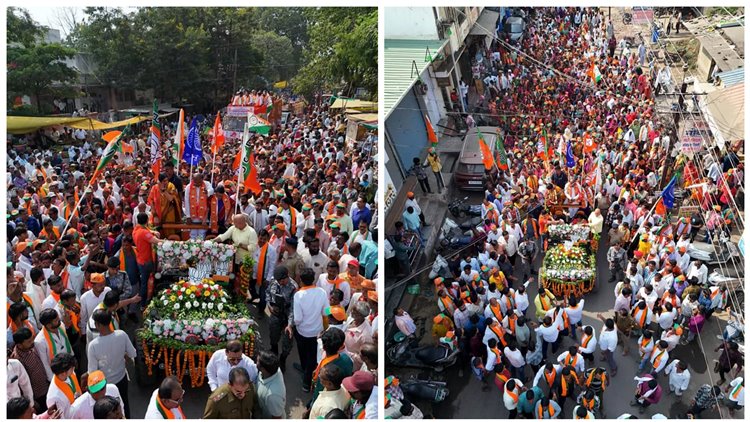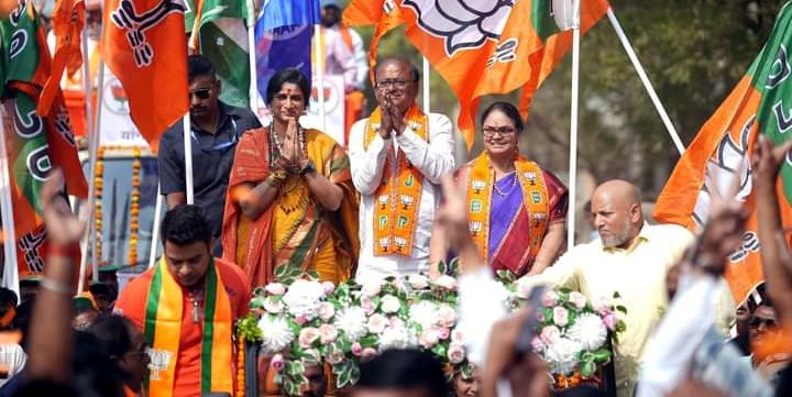 दु. 12 वाजता शासकीय मैदान येथून आ. संजीवरेड्डी बोदकुरवार यांच्या रोड शोला सुरुवात झाली. ढोलताशा, डफडे, गोंडी वाद्यवृंद, डीजेच्या गजरात व कार्यकर्त्यांच्या जल्लोषात रॅली निघाली. रॅलीतील सजवलेल्या बग्गीत भाजप नेत्या माधवी लथा, आ. संजीवरेड्डी बोदकुरवार, त्यांच्या पत्नी ललिता बोदकुरवार यांची उपस्थिती होती. त्यानंतर दुस-या बग्गीत भाजपचे प्रमुख नेते उपस्थित होते. सुमारे एक किलोमीटर लांब ही रॅली होती. खाती चौक, गांधी चौक, काठेड ऑईल मील, टागोर चौक टिळक चौक असा मार्गक्रमण करीत शासकीय मैदान येथे रॅलीची सांगता झाली. त्यानंतर भव्य सभा घेण्यात आली.