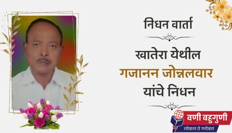 बहुगुणी डेस्क, वणी: खातेरा (अडेगाव) येथील प्रतिष्ठित शेतकरी आणि व्यावसायिक गजानन जोन्नलवार (70) यांचे रविवारी रात्री 11.30 वाजता प्रदीर्घ आजाराने निधन झाले. त्यांच्यावर खातेरा येथील मोक्षधामात दुपारी 12.00 वाजता अंतिम संस्कार होतील. त्यांच्या पश्चात पत्नी, दोन मुलं, एक मुलगी, जावई, नातवंडं असा आप्तपरिवार आहे. मनमिळाऊ आणि आदरातिथ्य करणारा म्हणून त्यांची ख्याती होती. त्यांच्या जाण्याने सर्वत्र हळहळ व्यक्त केली जात आहे.