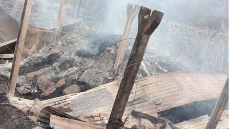 यावेळी पिंपळशेंडे यांची जनावरे गोठ्यात बांधून नसल्याने प्राणहानी झाली नाही. महसूल विभागाच्या अधिकाऱ्यांनी सदर घटनेचा पंचनामा करून नुकसान भरपाई मिळवून देण्याची मागणी आहे.