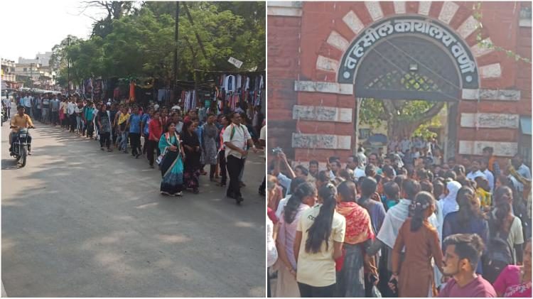 दुपारी दोन वाजता शासकीय मैदानावर वणी मारेगाव झरी या तालुक्यातून पोलीस भरतीची तयारी करणारे सुमारे 700 ते 800 विद्यार्थी हजर झाले. क्रीडा प्रशिक्षक डॉ. दिलिप मालेकर यांच्या मार्गदर्शनात व डॉ. महेंद्र लोढा यांच्या नेतृत्वात विद्यार्थ्यांचा भव्य मोर्चा काढण्यात आला. यावेळी सरकारविरोधात जोरदार नारेबाजी करण्यात आली. मोर्चा शासकीय मैदान ते शिवाजी चौक मार्गक्रमण करत तहसिल कार्यालयात याची सांगता झाली. तहसिल कार्यालयात हा निर्णय मागे घेण्यासाठी उपविभागीय अधिकारी यांच्या मार्फत मुख्यमंत्र्यांना निवेदन देण्यात आले.