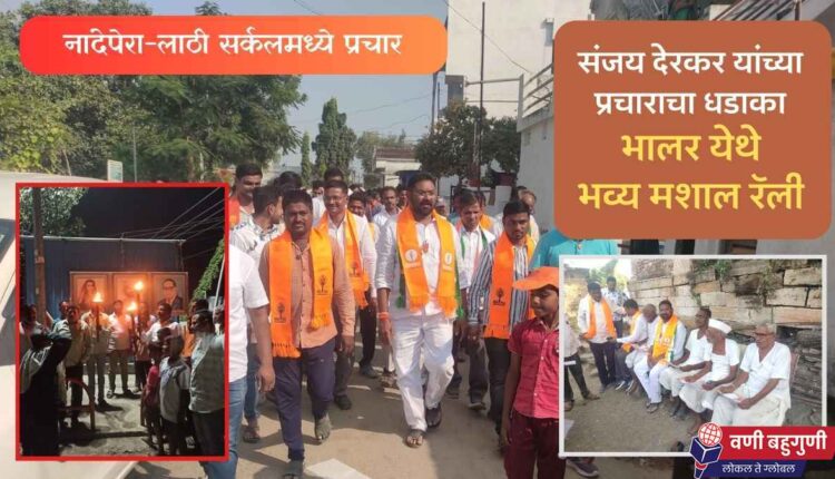 भालर गावात मशाल रॅली काढण्यात आली. अनेक शिवसैनिक मशाल हातात घेऊन रॅलीत उपस्थित होते. या भालर गावात संजय देरकर यांचे फटक्यांची आतिषबाजी करीत भव्य स्वागत करण्यात आले. यानंतर बेसा, लाठी, निवळी, तरोडा, बेलोरा येथेही रॅली काढून प्रचार करण्यात आला.