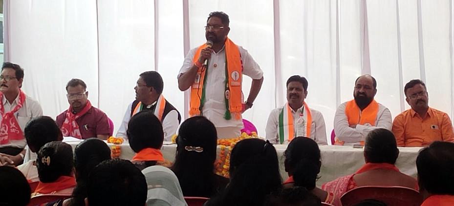 मार्क्सवादी कम्युनिस्ट पक्षाचे कुमार मोहरमपुरी यांनी भाषणात मोदी सरकार व महायुती सरकारवर जोरदार ताशेरे ओढले. सध्या महाराष्ट्रात जे सरकार कार्य आहे ते खोक्याचं सरकार आहे. खोके देऊन विकत घेतलेले नेते सरकारमध्ये आहेत. महाराष्ट्रात सुरु होणारे सर्व उद्योग शिंदे व फडणवीस सरकारने गुजरातला नेले. एकीकडे सोयाबिनला भाव नाही. मात्र तेलाच्या किमती मात्र वाढवल्या. अशी टिका त्यांनी केली तर संभाजी ब्रिगेडचे अजय धोबे यांनी शेतक-यांच्या परिस्थितीवर भाष्य करीत आता शेतक-यांनी सरकारला खाली खेचावे असे आवाहन मतदारांना केले.