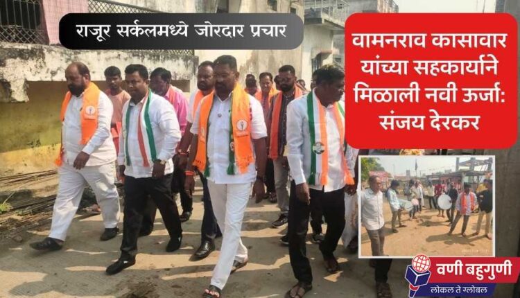 शनिवारी दिनांक 9 नोव्हेबर रोजी संजय देरकर यांचा मूर्धोनी, परसोनी, सोमनाळा, निंबाळा, राजूर, मार्डी, गळेगाव, सोनापूर, मजरा या गावांचा प्रचार दौरा होता. यावेळी गावागावात प्रचार ताफ्याचे गावक-यांनी स्वागत केले. राजूर येथे येथे फटाक्यांची आतिषबाजी करीत राजूरवासीयांनी त्यांचे स्वागत केले. त्यानंतर राजूरमध्ये पदयात्रा काढण्यात आली. यावेळी ‘बटेंगे नही, जितेंगे, एक संधी संजय देरकर यांना’ अशी नारेबाजी करण्यात आली. पदयात्रेत देरकर यांनी राजूरवासीयांना बहुमताने निवडून देण्याचे आवाहन केले. पदयात्रेनंतर प्रचार सभा पार पडली.