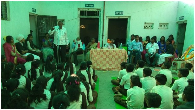 या कार्यक्रमाचे अध्यक्ष संस्थाध्यक्ष रामाजी गोंलावार हे होते. प्रमुख मार्गदर्शक म्हणून प्रा. सुरेश पाटील आंबेडकर महाविद्यालय चंद्रपूर, प्रमुख अतिथी संस्थासचिव सतीश घुले, मुख्याध्यापिका रेखा मडावी, अविनाश ठाकरे, संजय तेलंग, सुरेंद्र इखारे, रविकांत गोंलावार, योगेश सातेकर हे उपस्थित होते. या प्रसंगी मान्यवरांचे हस्ते प्रतिमेचे पूजन करून दीप प्रज्वलन करण्यात आले. तसेच पाहुण्यांचे स्वागत “स्वागताचा सोहळा” या समूह गीताने करण्यात आले.