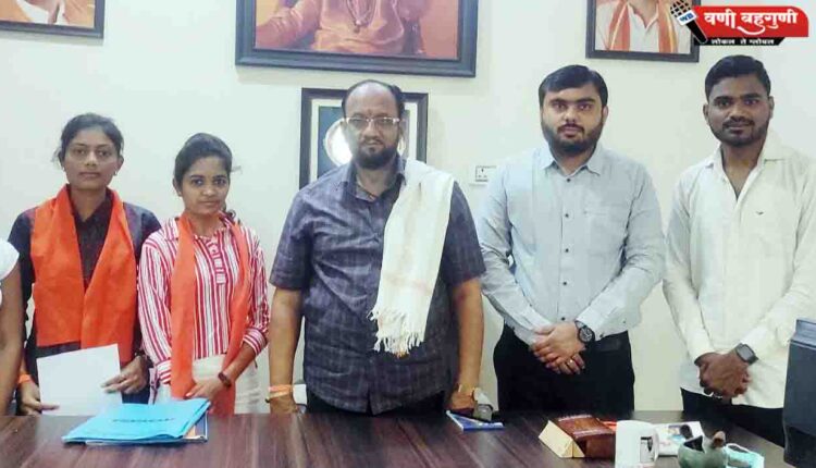 स्नेहा ताजने यांची वणी शहर युवती अधिकारी तर साक्षी मेश्राम उपशहर युवती अधिकारी
