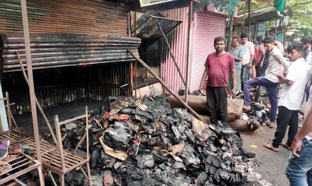 तीन दुकाने जळून खाक, फुटपाथ व्यापाऱ्यांचे लाखोंचे नुकसान