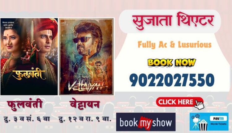 बहुगुणी डेस्क, वणी: दस-याच्या निमित्ताने या आठवड्यात वणीतील सुजाता थिएटरमध्ये सिनेमाचा डबल धमाका राहणार आहे. प्रेक्षकांना तब्बल दोन सिनेमा पाहता येणार आहे. दु. 3 व संध्या 6 वा. मराठी सिनेमा फुलवंती तर दु. 12 वा व रात्री 9 वा. वेट्टीयान हा सिनेमा पाहाता येणार आहे. सिनेमाची ऍडव्हान्स बुकिंग सुरू असून बूकमायशो , पेटीएम मुव्ही या ऑनलाईन प्लॅटफॉर्मवर तसेच 9022027550 या क्रमांकावर संपर्क साधूनही प्रेक्षकांना बुकिंग करता येणार आहे. प्रेक्षकांना ऍडवॉन्स बुकिंग करून आपल्या आवडीची सीट बुक करता येणार आहे.