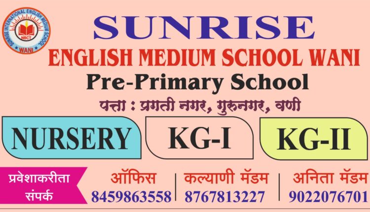 बहुगुणी डेस्क, वणी: वणी शहरातील प्रगती नगर/ गुरुनगर येथील सुपरिचित सनराईज इंग्लिश मीडियम स्कूलची प्रवेश प्रक्रिया नुकतिच सुरू झाली आहे. पालकांना अगदी वाजवी दरात शिक्षण देण्याच्या उद्देशाने येथे अवघ्या साडे 3 हजार रुपयांमध्ये पालकांना आपल्या पाल्याचा प्रवेश निश्चित करता येणार आहे. सोबतच विद्यार्थ्यांना इतर शैक्षणिक साहित्यही मोफत दिले जाणार आहे. अधिक माहितीसाठी 8459863558 (ऑफिस) या क्रमांकावर किंवा सनराईज इंग्लिश मीडियम स्कूल, प्रगती नगर/ गुरूनगर येथील कार्यालयात संपर्क साधता येईल.