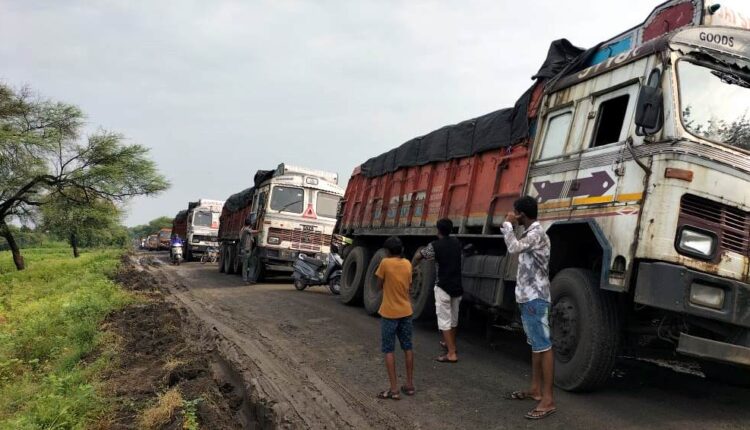 सविस्तर वृत्त असे की वणी ते नांदेपेरा या मार्गावरून वरोरा तालुक्यातील एकोणा कोळसा खाणीतून निघणा-या कोळशाची वाहतूक सुरु असते. बुधवारी दिनांक 21 सप्टेंबर रोजी नांदेपेरा ते मजरा दरम्यान रात्री एक कोळसा भरलेला ट्रक रस्याच्या बाजूला काळ्या मातीत फसला. त्यामुळे रात्रीपासून या रस्त्याच्या दोन्ही बाजूला ट्रकच्या रांगा लागल्या. त्यामुळे या मार्गावरून वाहतूक करणा-यांना चांगलाच त्रास सहन करावा लागला.