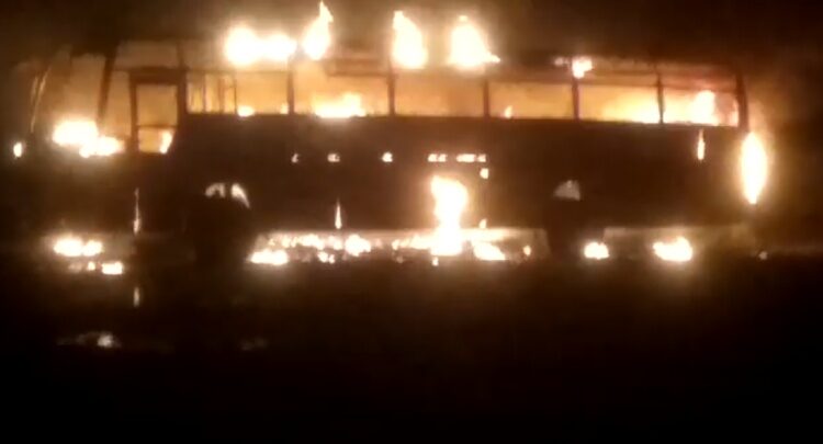 भर पावसात दोन ट्रॅव्हल्स आगीत जळून भस्मसात