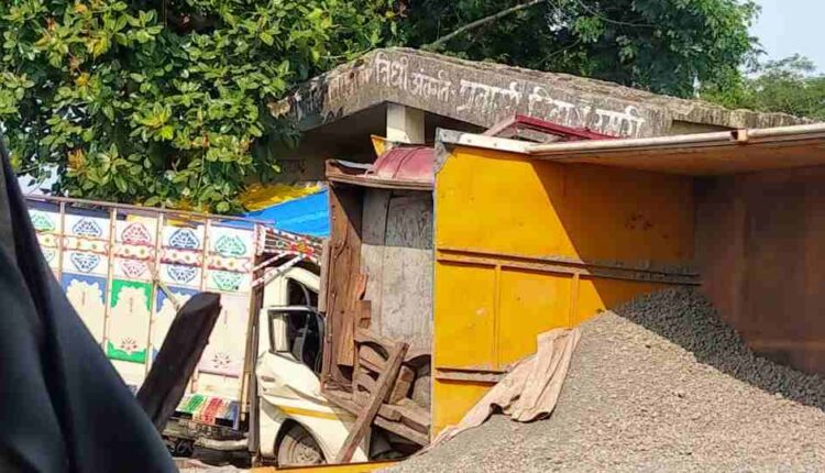 जितेंद्र कोठारी, वणी : राज्यमार्गावर ठिकठिकाणी उभारण्यात आलेले गतीअवरोधक (ब्रेकर) वाहन चालकांसाठी जीवघेणे ठरत आहे. शनिवार 3 सप्टेंबर रोजी दुपारी 1 वाजता दरम्यान वणीच्या दिशेने जात असलेला भरधाव ट्रक राज्यमार्ग क्रमांक 319 वर उमरी गावाजवळ असलेल्या ब्रेकरवर उसळला आणि रस्त्याच्या बाजूला प्रवासी निवाऱ्या समोर उभ्या असलेल्या टाटा एस (छोटा हत्ती) वाहनावर जाऊन पलटी झाला. यात टाटा एस वाहनाचा चेंदामेंदा झाला. सुदैवाने वाहनात चालक व इतर कोणीही व्यक्ती नसल्याने मोठी घटना टळली.
