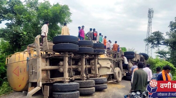 वणी-मुकुटबन मार्गावर कायरजवळ ट्रक पलटी