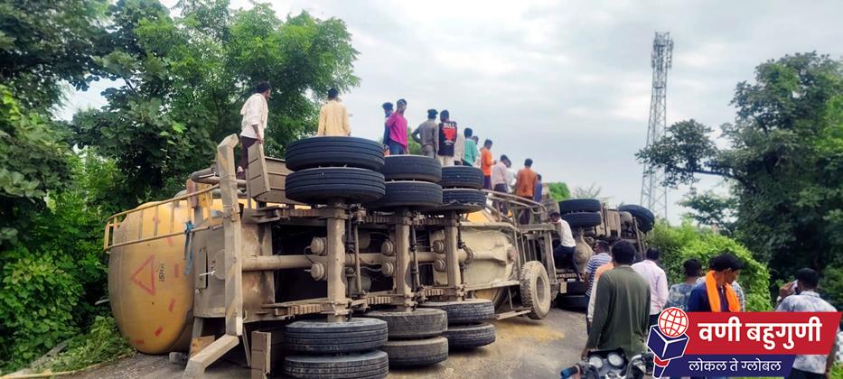 बहुगुणी डेस्क, वणी: वणी-मुकुटबन मार्गावरील कायर गावालगतच्या सैदाबाद फाट्याजवळ एक ट्रक पलटी झाला. आज शनिवारी सकाळी 8:30 वाजताच्या सुमारास हा भीषण अपघात झाला. एक सिमेंट वाहून नेणारा ट्रक (RJ 57-G A 0195) रस्त्याच्या मधोमध पलटी झाला. त्यामुळे संपूर्ण वाहतूक ठप्प झाली. सुदैवाने या अपघातात कोणतीही जीवितहानी झालेली नाही.