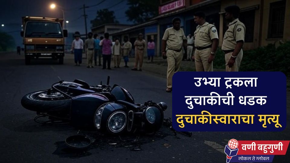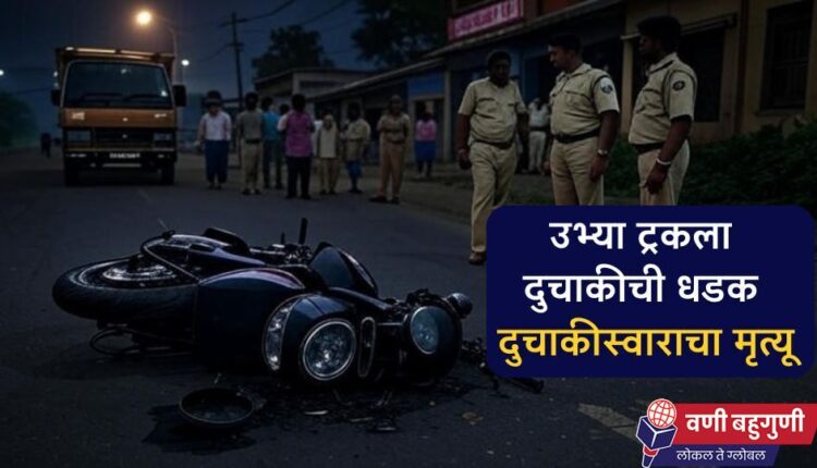 बहुगुणी डेस्क, वणी: वणी-वरोरा मार्गावरील सावर्ला गावाजवळ गुरुवारी, दि. 21 ऑगस्ट 2025 रोजी सायंकाळी 7 ते 7.30 वाजताच्या सुमारास एक भीषण अपघात झाला. रस्त्यावर उभ्या असलेल्या एका ट्रकला दुचाकीने मागून धडक दिल्याने दुचाकीस्वाराचा दुर्दैवी मृत्यू झाला. या अपघातात भास्कर कुमरे (वय अंदाजे 40) हे मृत्युमुखी पडले.